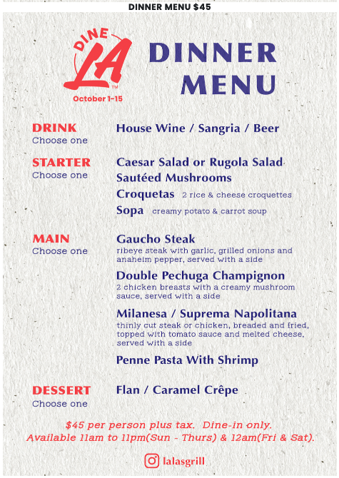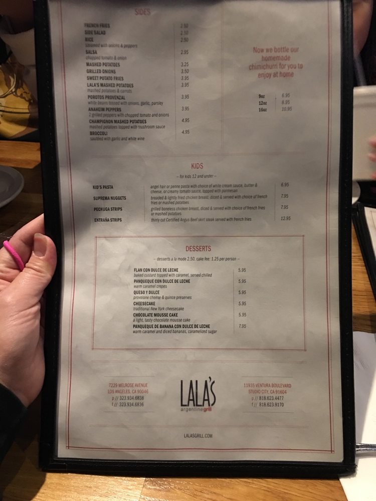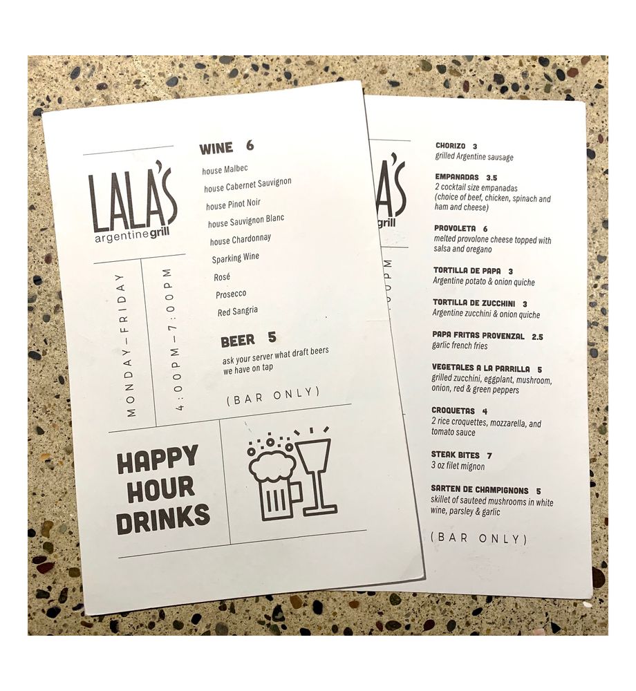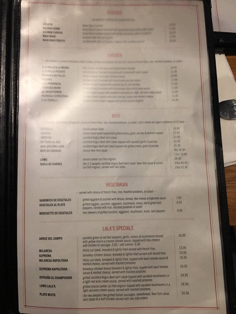Introducing the menu at Lala’s Argentine Grill - Temp. CLOSED, located in Los Angeles, CA, where Latinx-owned charm meets authentic Argentine flavors. From empanadas to perfectly grilled meats in the parrillada, every dish is a delight. Standout items include the chorizo, skirt steak, and arroz del campo, all complemented by the irresistible free bread and chimichurri sauce. The warm ambiance, accompanied by covered outdoor seating and gender-neutral restrooms, creates a welcoming atmosphere for all. The menu offers options for keto, vegan, and vegetarian diets, ensuring a dish for every palate. Don't miss the chance to experience Buenos Aires right in LA with Lala's Argentine Grill.
